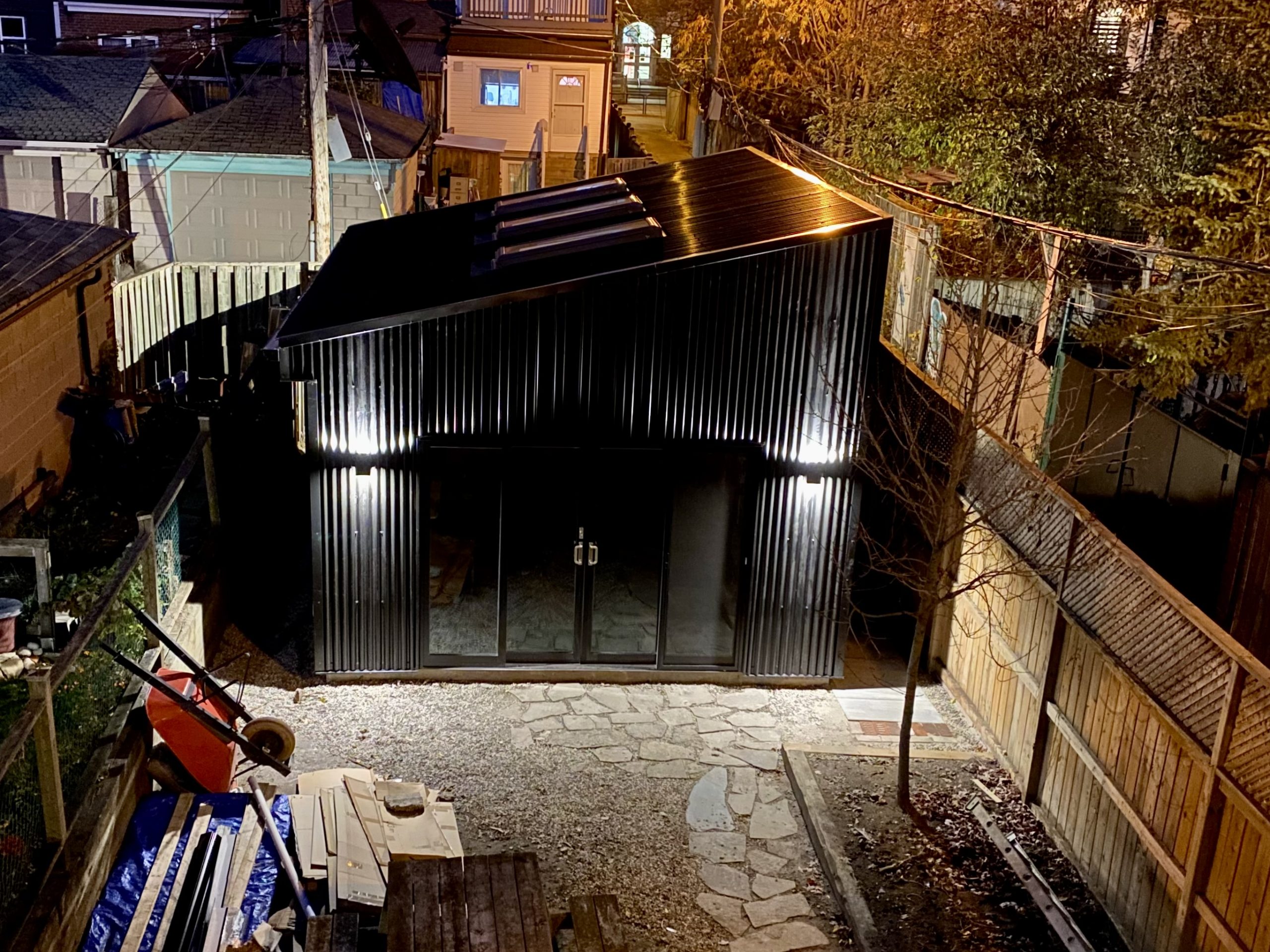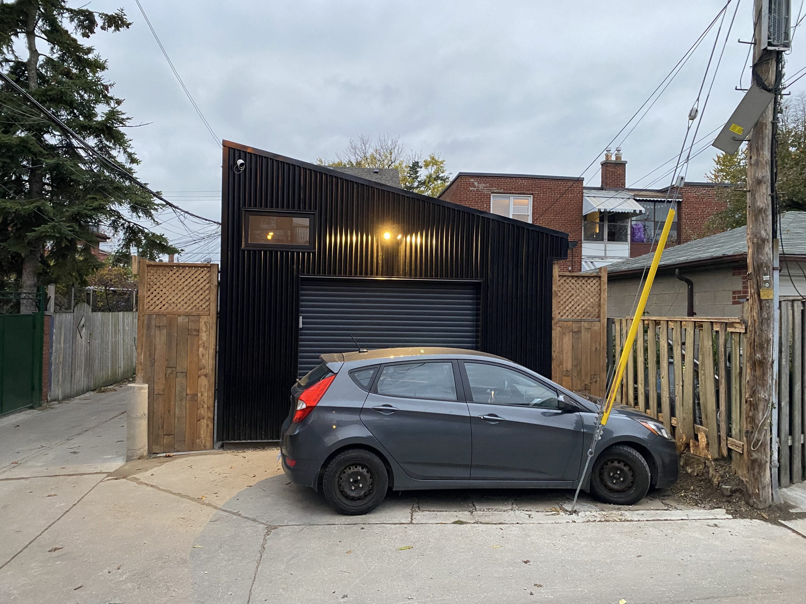 An existing collapsing garage was replaced with a combination garage and garden studio. Large, full-panel sliding doors face the garden while a mute facade faces the laneway. While thermal performance is not required, a split insulation wall assembly and cold roof contributed to R values meeting new-build residential construction in order to provide a year-round usable temperatures with minimal intervention. Simple construction materials were selected for their low embodied energy and recycling potential. In creating a versatile space we expanded the Owner’s use throughout life’s seasons.