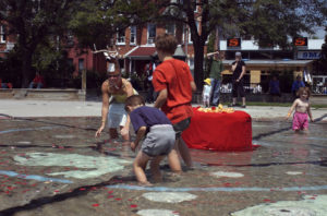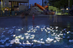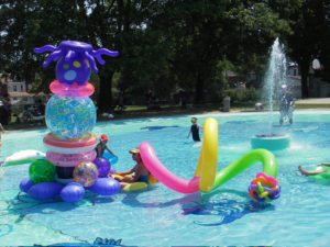 The Wade Collective researches immersive environments in installation and performance art. We began with a mutual interest in contemporary art in public spaces with a mandate to open dialogues between the arts, the community, and our public spaces. Grounded in the premises of art as experience, the situationists, and the participatory artworks of the late 20th century, we trace interventionist and temporary lineages, relational aesthetics, and the turn away from the object and towards living networks. Quotidien community life and the space constitute the spaces of intervention with a tactical approach to urban transformation. The Collective produces the Wade Festival for Performance and Installation Art in Toronto’s public pools to create a dialogue between artists and communities through cultural activities in public spaces. By encouraging community members to engage playfully in their environments, emphasizing the importance of place to the social and cultural life. Toronto’s identity as a collection of communities is emphasized, and as people tour the events they connect to the whole of the city’s fabric. Temporary events staggered over the weekend permit people to move from one to the next. The nature of the project creates parallels between the city, the pool, and the public, raising awareness of pools as public space. We wish to highlight our natural and social resources through vital experience. Wading pools relate to a neighbourhood scale and a city-wide network, offering ideal locations for interventions spread throughout the city fabric. The project creates a temporal urban infrastructure superimposed on the loosely-connected network of parks and pools, drawing attention to underused resources and opening up possibilities for urban inhabitation through the participation of seasoned and young artists from Toronto, Canada and abroad. The project poses questions about public art and its potential agency in day-to-day life. Wading pools typically have a well-defined use, time, and user group that could be expanded, exemplifying the under-use of many of our shared resources. We saw in the wading pools the potential for temporary projects that would challenge peoples’ expectation of these places. The recreational places of the city, places for contemplation and pleasure, form a spatial disjuncture within the continuous fabric of the working city: the festival is its temporal counterpart. Unpredictable events link the pools as a networked system in time and space within the city’s metabolism. WADE creates a ripple effect of engagement in city spaces, which would travel beyond the pools into the park, the communities they serve, and the city as a whole. The participatory invitation extends into other public spaces and spheres of activity.